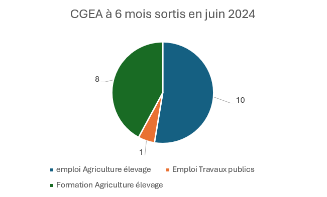 Cela confirme que le BTSA ACSE prépare efficacement à l’emploi, tout en permettant une polyvalence et des compléments de formation. Bac Pro CGEA – Sortis en juin 2024 (enquête à 6 mois)![]() Observations La répartition montre :