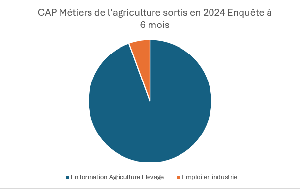 Insertion à 6 mois des promotions sorties en 2024Enquête réalisée en 2024 sur l'insertion des différentes promotions: CAP Métiers de l’Agriculture – Sortis en 2024 (enquête 6 mois) ![]() Observations Le graphique montre une répartition fortement déséquilibrée :